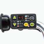 ▲ハンドルに設置された3ファンクションメーターが残りアシスト走行可能距離やバッテリー残量を表示