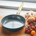 PFAS不使用のセラミックノンスティック加工と独自の「ネット・インダクション」技術採用で熱を均一に分散させ、ムラなく美味しく仕上がる。人間工学に基づきフライパンの形状やハンドルを最適化。使い心地も抜群だ。