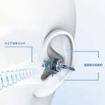 ▲内蔵された複数のスピーカーから発せられる音波を精密に制御し鼓膜に直接音を届ける指向性オーディオ技術を採用