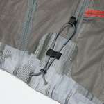 東レの特殊技術“ナノデザイン”を素材に使用。撥水性がありながらもしなやかな風合いを有するストレッチ性ボディが特徴。さらにUVカット機能も付属。収納袋は左脇内側のループに付けておける。