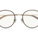 紫外線量に応じて色が変わる調光レンズを採用。華奢なステンレス素材をフレームに使用しつつ、フロントの縁にはツヤのある七宝を塗装して立体感を演出。緩やかな丸みを描くシェイプが洒脱な雰囲気を際立たす。