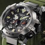 「MRG-BF1000R」をベースにアフリカ西部の熱帯雨林に生息する世界最大のカエル・ゴライアスガエルをモチーフに設計。高い防水性を備える本格ダイバーズとして着け心地の良いフッ素ラバー製のデュラソフトバンドやBluetooth通信など機能面も充実している。
