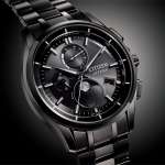 薄型で美しいブラックチタン製ボディで軽さと堅牢さを両立したエコ・ドライブ電波時計。アナログ式光発電腕時計で世界初となる月齢自動計算機能「ルナプログラム」を搭載し、北・南半球の月齢表示切替機能「NSシフト」も備える。ケース径41.5mm、100m防水。
