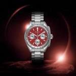 1971年にアポロ15号が月面着陸に成功した際、船長が月面で使用した「ルナ パイロットクロノグラフ」のオリジナルデザインを忠実に再現。本カラーは皆既月食の赤い輝きを表現した新色。月差±5秒の高精度ムーブメントを搭載する。ケース径43.5mm、50m防水。