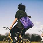▲肩掛けすれば、自転車移動や街歩きにもすんなりフィット。軽快で丈 夫なつくりゆえ、普段使いから旅先まで気兼ねなく持ち出せる。