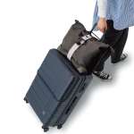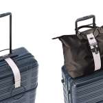 幅広ベルトと強力ゴムで、サブバッグをスーツケースにがっちり固定できるアイテム。スーツケースのハンドルに通してカバンを留めるだけ。簡単装着で移動が楽に!
