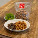 目黒にある食と雑貨のセレクトショップのオリジナル商品。貴腐ワインに漬け込んだマスカットレーズンとアメリカ産の減塩ミニプレッツェルをミックスしたオンリーワンな美味しさ。