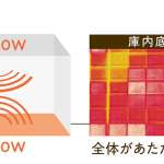▲底エンジンと奥のエンジンの2つからマイクロ波を発生させて、食材の加熱が可能。庫内全面をムラなく温められる