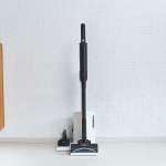 独自の360°クリーニング機能を採用したコードレススティック掃除機。新開発のアクティブフラップがヘッドの動きに合わせて空気が流れる道を作ることで押し引きどちらでもゴミが吸引できる。ウォームブラックとライトラベンダーの2色展開。