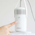 ▲乾燥機本体は500mlのペットボトルよりも小さく、携帯性も抜群。衣類乾燥モードは強・弱2段階で設定できる