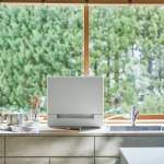 コンパクトサイズでキッチンの隅に設置できる食洗機。それでいて4人分の食器が洗えるのがスゴイ。水栓を繋げるハードルはありますが、キッチンでの時間を大幅に短縮できます(コヤマさん)