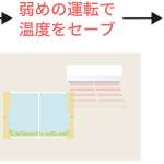 ▲人がいる/いないをセンサーが検知して不在時間に弱めの運転に切替える「消し忘れオートOFF」機能が進化。わずかな不在時間も見逃さずムダを省いて消費電力を抑える