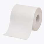 1ロールが幅108mm×長さ30m。上質の古紙を使用した100%再生紙だ。マイクロエボス加工により、柔らかく、やさしい使い心地。ミシン入りで切れやすく、ダブルなので丈夫。