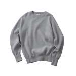 上質なカシミヤを贅沢に編み上げ、スウェットの気軽さとニットの上品さを兼ね備えています。袖や裾のリブには強めのテンションをかけ、スタンダードなシルエットと相まって時代に左右されないデザインになっています(alpha Brand Consulting PR Communications 稲垣大貴さん)