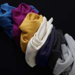 ▲カシミヤならではの鮮やかな発色も魅力。深みのあるトーンから軽やかな色まで、素材の上質さを引き立てる豊富な色展開を揃える