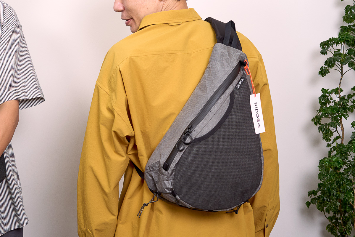 軽量な肩掛けパック。前にスライドさせることで、歩きながらでも荷物を取り出しやすい。素材には耐久性に優れた「Ultra100X」を採用しアウトドアでもタフに使える。容量は約8L