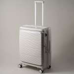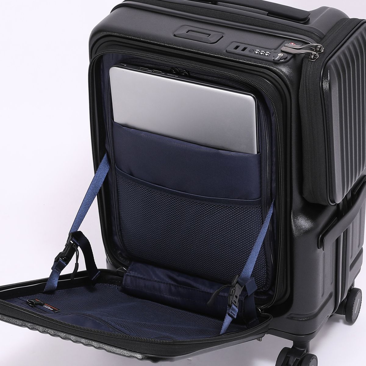 購入時に最も重視される“軽さ”と“丈夫さ”がポイントの1台。複合素材 フレックスシェルをボディに採用し、軽量かつ剛性ならびに耐衝撃性を両立。また、体感音量30%軽減のサイレントキャスター”やスムースな移動をサポートする“ベアロンホイール”搭載とプロテカシリーズの特徴も網羅しています。機内持ち込みだけでなく、特大サイズの103Lまでラインナップ。北海道・赤平工場で製作された日本製です。サイズ(01541):55×37×23cm、重量:約1.8kg