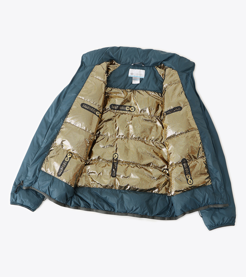 そして、このモデルの核となるのが、体温を効率よく反射させる独自機能「オムニヒートインフィニティ」です。裏地に配されたゴールドのドットが熱を保持し、軽量な着心地でもしっかりとした保温力を発揮。