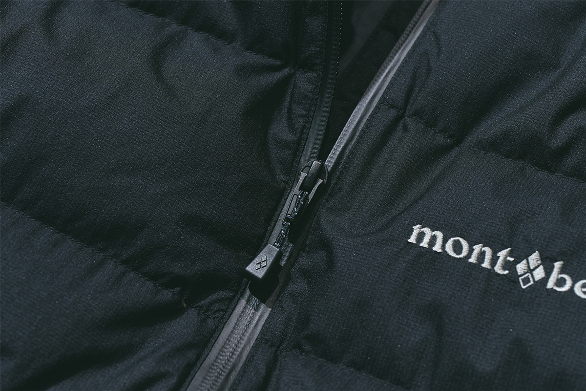 ジップ部分には高い止水性を持つ「アクアテクトジッパー」を採用し、フラップなしでも雨雪の侵入を抑える構造になっています。軽量ダウンながら防風性・防滴性に優れ、ちょっとした悪天候での移動やアウトドアの前後行動でも活躍すること間違いなし。