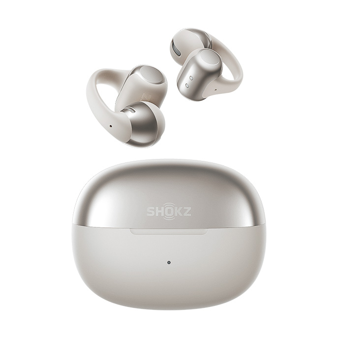 アクセサリーのような外観が特徴的なイヤーカフ式ワイヤレスイヤホン。片耳6.5gで、肌に触れる部分は肌触りの良いシリコンで覆われている。