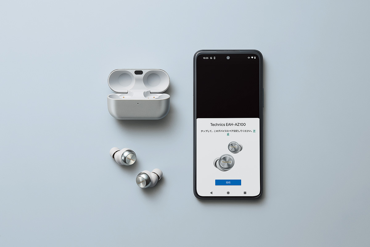 ▲イヤホン・ケースともに高級感が◎。ケース上蓋はアルミ素材で、Technicsのロゴを刻印する。高級感のあるヘアライン加工も特徴だ