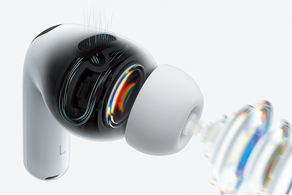 ▲遮音性の高いイヤーチップの採用とANCの処理向上により、ノイズキャンセリング性能は第1世代から最大4倍に