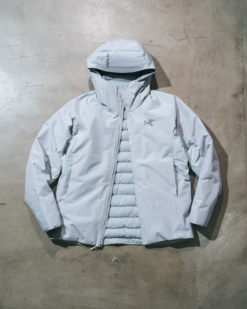 シルエットはアークテリクスらしいすっきりとしたバランスで、街着としても取り入れやすい佇まい。寒暖差の大きいシーズンをスマートに過ごすための、軽量アウターとして完成度の高い一着です。