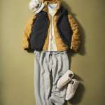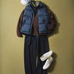 最後に紹介したい着こなしはダウンジャケットの上にダウンベストを重ねるダウン・オン・ダウン。難易度高めに思えますが、意外としっくり来るのが見て取れるでしょう。着こなしのコツとしては、ダウンベストはブラックなどダークトーンのなるべくシンプルなデザインのモノを選ぶということ。着こなしの引き締め役として使用するイメージです。そうすることでダウン・オン・ダウンでも切り替えデザインのような印象になり、やりすぎ感を抑えられます。