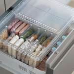 ▲3段ケースの冷凍室の構成は、上から「ソフト冷凍室(53L)」「急速冷凍室(24L)」「製氷室(15L)」「3段トレイ冷凍室(131L)」