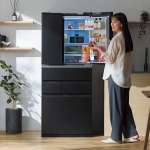 幅65cmで547Lの大容量を実現。棚の高さやドアポケットの仕切りを変えられる「中だけひろびろ大容量」や、AIが生活パターンを学習して最適に運転する「全室独立おまかせA.I.」を搭載。