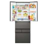 奥行65cmの薄型で543Lの容量を確保。食材を凍らせずに長期保存する「Deliチルド」や、氷の膜で保存する「氷結晶チルド」、サクっと切れる「解凍モード」の「3WAYチルド」を搭載。