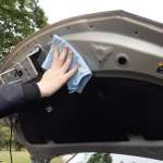 電装品もあるため水をかけるのは避けたい。ウエスでの水拭きだけでも十分キレイになり、凹凸部の汚れはブラシでかき出すといい。ボンネットの裏側も忘れないように汚れを落としておきたい。