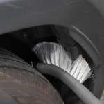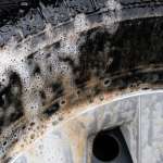 ▲タイヤハウスの汚れは意外と目立つ。タイヤブラシとカーシャンプーを使ってこびりついている泥汚れを徹底的に落としておきたい