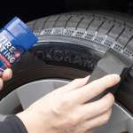 ▲自然な黒ツヤを与えるコーティング剤がオススメ。(写真はシュアラスター「タイヤコーティング+R」)