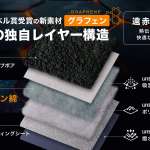 ▲マイナス15°Cの極寒でも保温し、ノーベル賞の受賞暦がある炭素繊維「グラフェン」を配合した6層独自構造