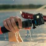 ▲超長い自撮り棒(別売)は最長3m。自撮り棒を軸にして左右に2回捻るだけで、録画の開始・停止が可能だ