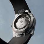 創業150周年を記念した日本限定モデル。黒く染め上げたマザーオブパール文字盤を採用しており、天然素材のため一つひとつ異なる表情が楽しめる。7時位置のオープンハートと赤いスモールセコンドがアクセントに。多層構造ケースや20気圧防水など機能性も充実。