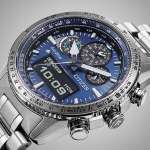 新ムーブメントCal.U830を搭載した、アナログ×デジタルのエコ・ドライブ コンビネーションウォッチ。3つのサブダイヤルは航空機のコクピットをイメージ。高精細MIP液晶により視認性が向上し、43都市+UTC対応ワールドタイムや航空計算尺など多彩な機能を備える。