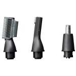 眉や顔のムダ毛を整えるフェイス用と、鼻毛の長さを整えるノーズ用のアタッチメントがついた2WAY仕様。フェイストリマーは長短2種類の刃で部位によって使い分けができ、ノーズトリマーは直径約6mmとコンパクト設計。