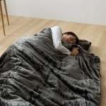 2枚の毛布を縫い合わせ、間に空気の層が生まれ暖かさがアップ。ミニ、シングル、ダブルの3サイズ展開。