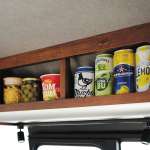 ▲フロントシート後方のキッチン上に備わる収納棚。下に自由に位置を変えられるレールライトがあり、使い勝手を高める