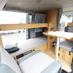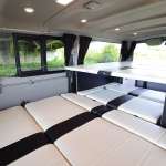 ▲2/3列目は前向き、後ろ向き/フラットに展開できるREVOシートに換装。ベッドは下段が2100×1400mm、上段が1800×1540mmで5名就寝