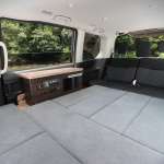3列目の跳ね上げシートやデュアルバックドアなどの利点を生かしながら、快適車中泊仕様に進化。強靭かつ軽量なアルミ材で重量増を抑えた