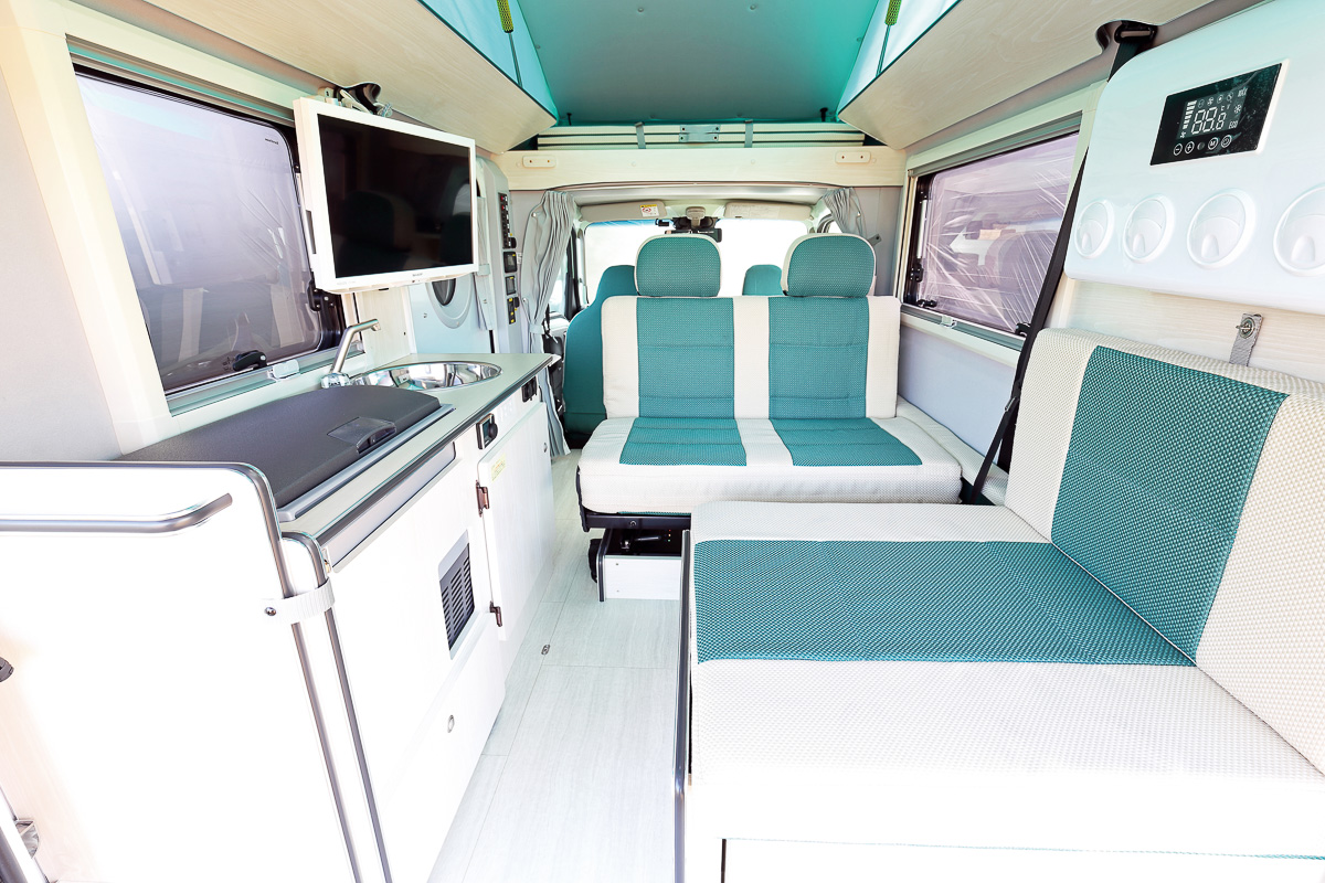 最新モデルはDC12Vクーラーや、それを動かすためのリチウムイオンバッテリーを軸にした電源強化システムをオプション設定。軽キャンパーでも価格上昇が著しいが、400万円弱の価格定は良心的だ。