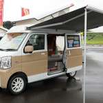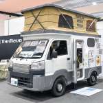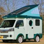 トヨタピクシストラック(ハイゼットトラックのOEM車)の荷台に高断熱キャンピングシェルを架装した軽キャブコン。屋根が垂直に持ち上がるエレベーティングルーフが特徴。ルーフアップ時の車内高は約1.9mで高さも均一。