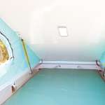 カラーバリエーションの豊富さやエントランスドアの丸窓、アルミ製シェルなどユニークな遊び心と職人技を融合させた軽キャンパーの理想形