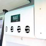 ▲DC12Vクーラーの室内機は右側面に据え付け。電源はリチウムイオンバッテリーまたは外部AC入力で作動させる仕組みだ