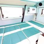 ▲フラットにしたFASPシートとキャビン後方の補助マット、跳ね上げマットを組み合わせるメインベッドは1840×1100mm。全面フラットで寝心地良好