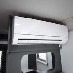 ▲家庭用エアコン、電子レンジ、冷蔵庫を標準装備。走行充電システムのサブバッテリーやポタ電、外部AC入力で動かす