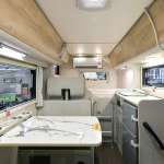 全長4640×全幅1930mmのコンパクトサイズで6人乗車/4人就寝を実現。ダイネット対面のキッチンが広くて使いやすくエントランスも広々
